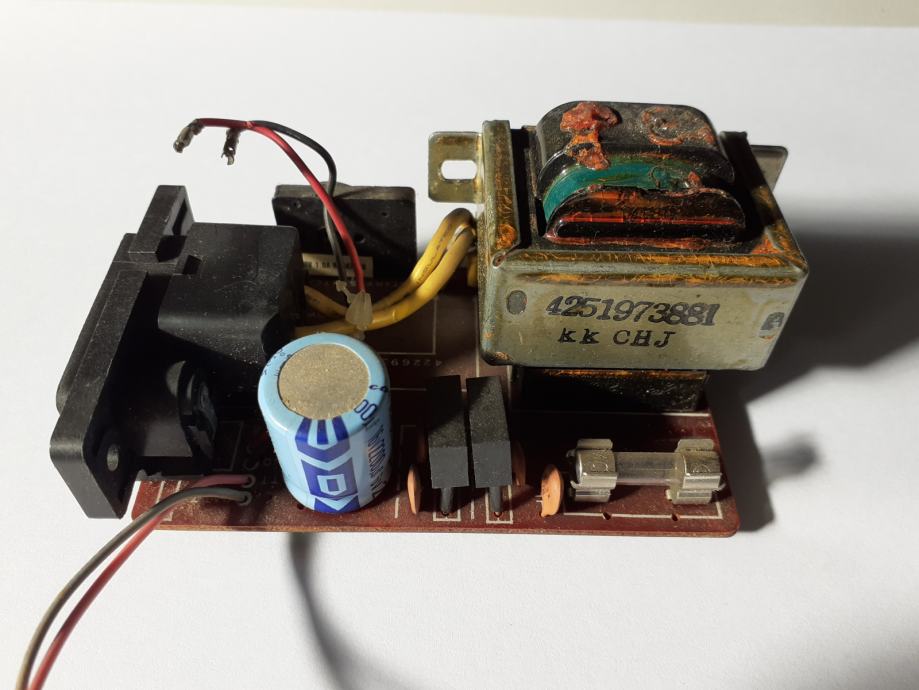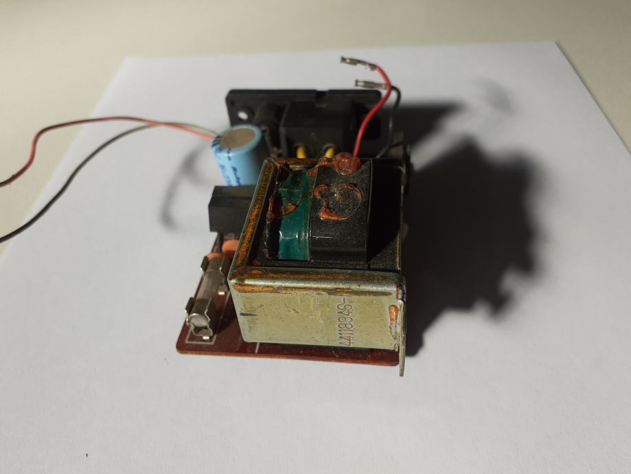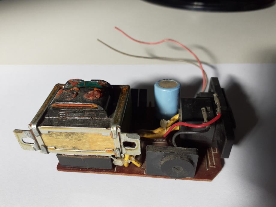 Prodajem ispravan transformator, skinut sa radio-kasetofona Sanyo M7200LU. Priključen na mrežu napona 240 Volta, daje jedan sekundar napona 8 V izmjenične struje, kojeg ispravljač na pločici pretvara u 10.5 V istosmjerne. gabarit transformatora bez pločice je 44x40x36 mm, a masa zajedno sa pločicom je 257 grama.