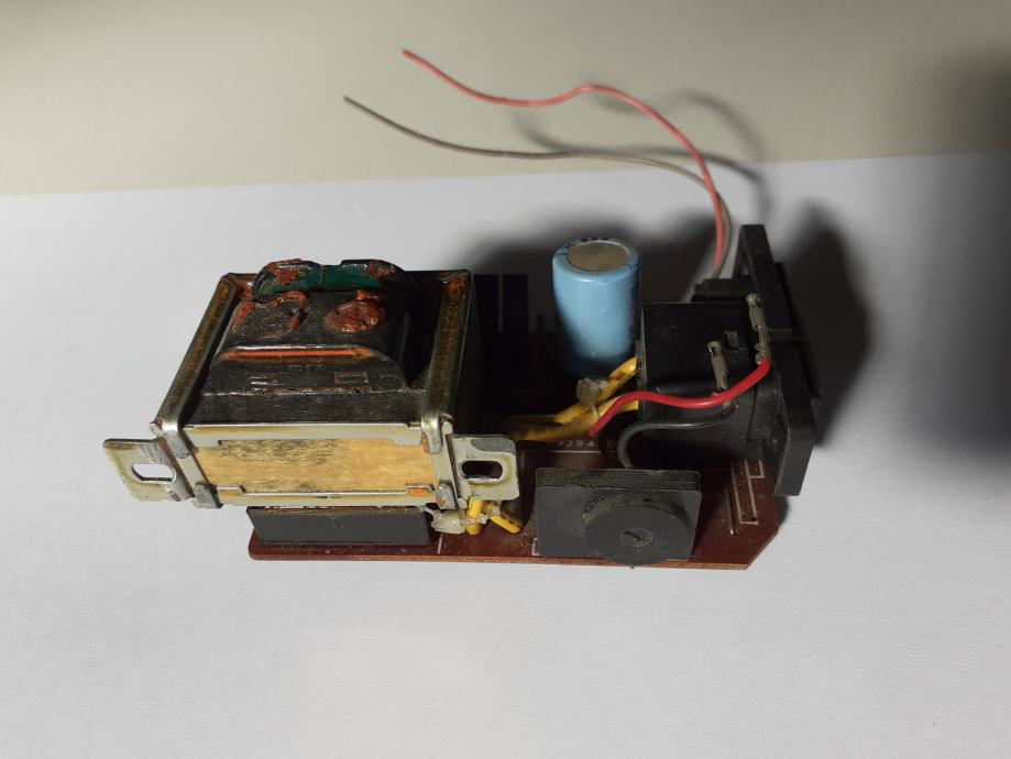 Transformator, 8 V AC, 10.5 V DC, skinut sa kasetofona Sanyo M7200LU