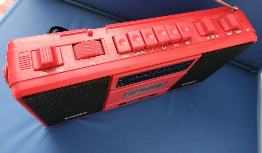 Njemački radiokasetofon sa kablom, odlično očuvan i ispravan. Rijetke crvene boje tako da je osim što svira, idealan i za dekoraciju prostora