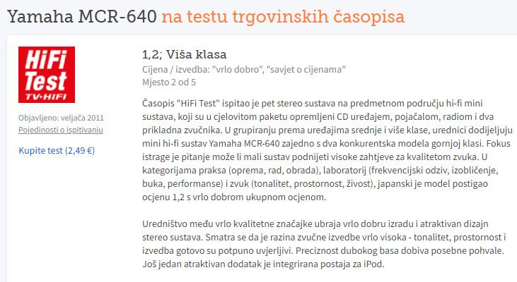 Moguća prodaja zajedno s Yamaha NS-BP301 za 350 Eura