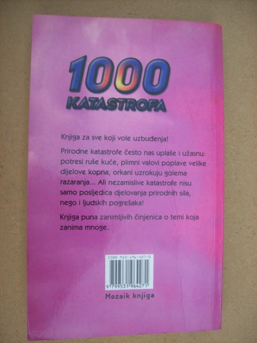Knjiga za sve koji vole uzbuđenja! Prirodne katastrofe često nas uplaše i užasnu: potresi ruše kuće, plimni valovi poplave velike dijelove kopna, orkani uzrokuju golema razaranja... Ali nezamislive katastrofe nisu samo posljedica djelovanja prirodnih sila, nego i ljudskih pogrešaka! Knjiga puna zanimljivih činjenica o temi koja zanima mnoge.