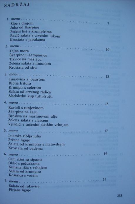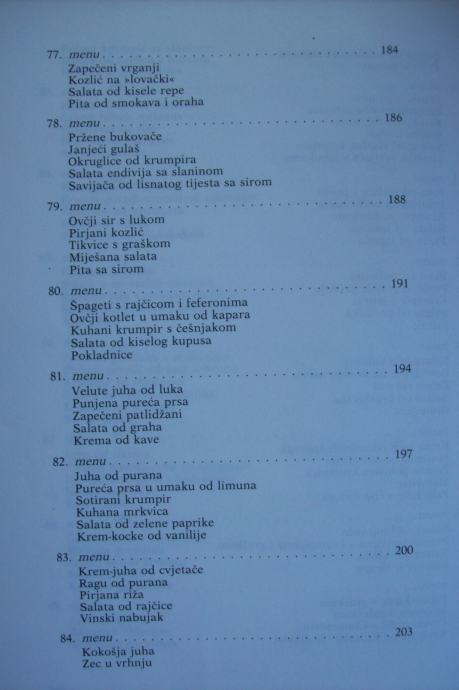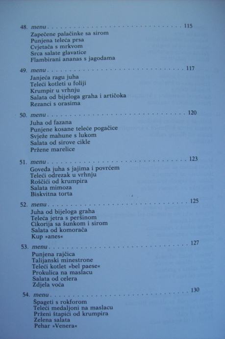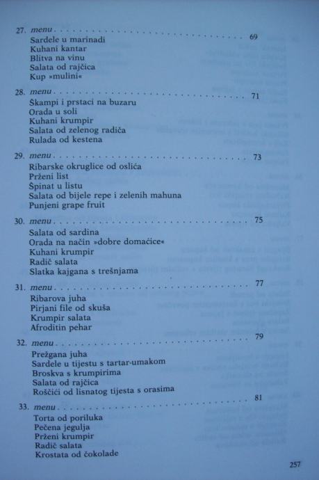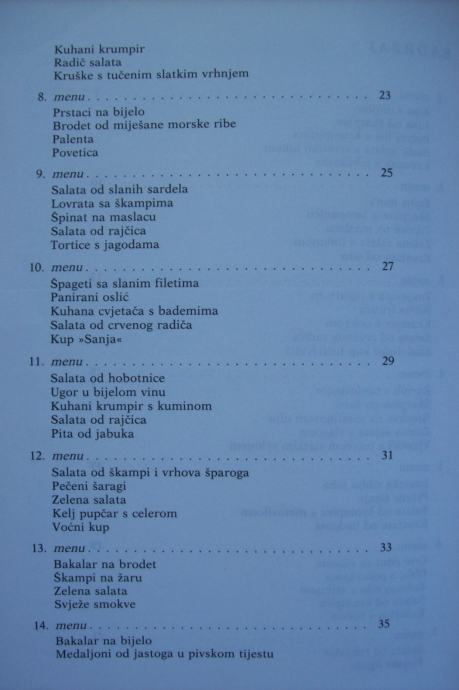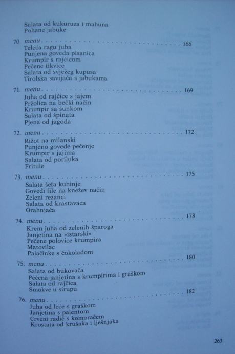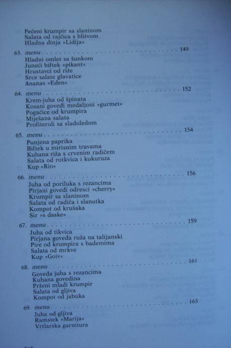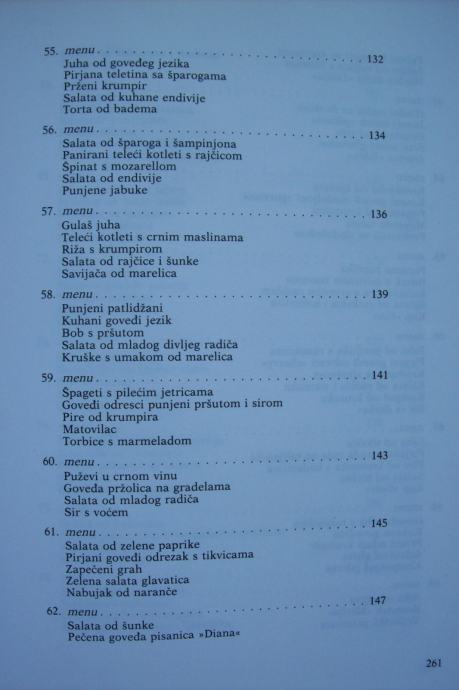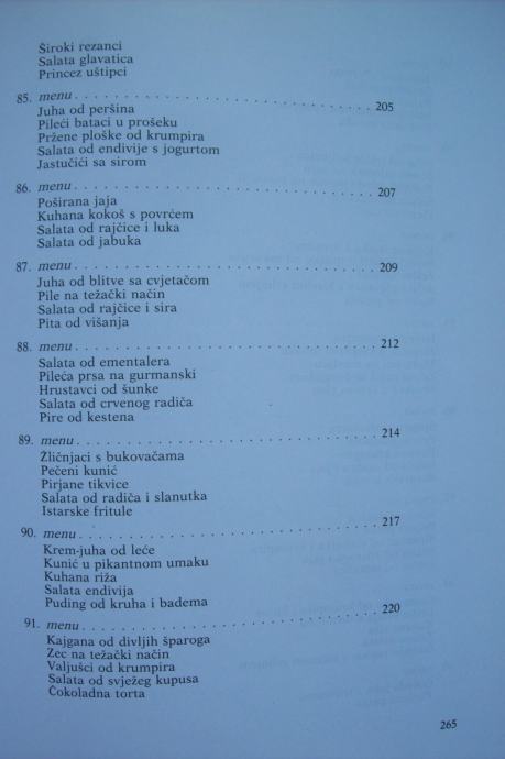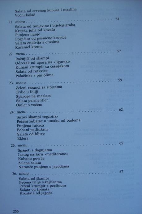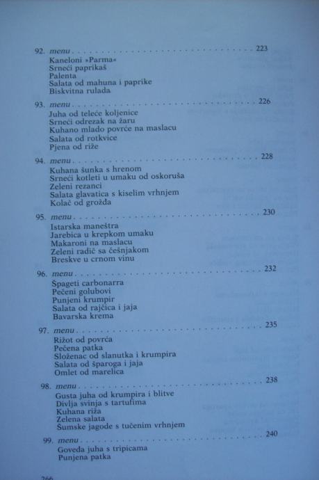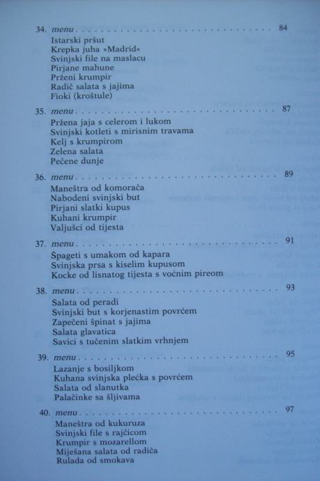 Recepti su obrađeni kroz 101 menu, a na vama je da ih koristite po svom nahođenju - već prokušane - ili da ih sami sastavljate po svojoj želji, mogućnostima i prilici.