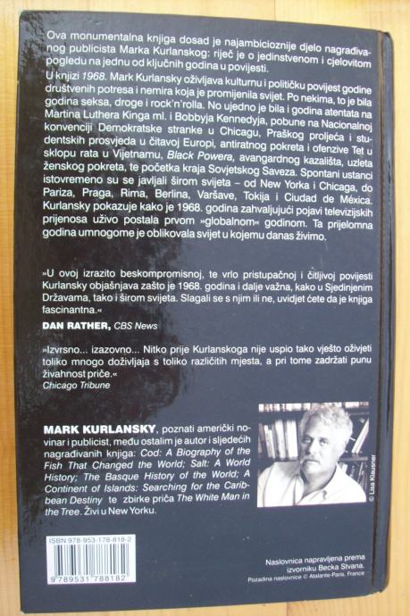 Naklada Ljevak upravo je objavila knjigu '1968. - godina koja je uzdrmala svijet' nagrađivanog publicista Marka Kurlanskog, u kojoj su detaljno opisani svi događaji koji su tu godinu učinili nezaboravnom - počevši sa studentskim pobunama, pa sve do ratova. U svemu tome ogleda se i razvoj medija te njihov utjecaj na pojedince i društva.
