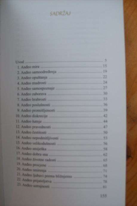 Kroz različite vrline koje autor pridaje pojedinim anđelima na jednostavan su način opisane snage koje oblikuju naš život, potencijali koji ga preobražavaju, koji nas mogu više suobličavati izvornoj slici, onome kakvi bismo mogli i trebali biti. Ti potencijali transformacije izlaze nam ususret u liku anđela.