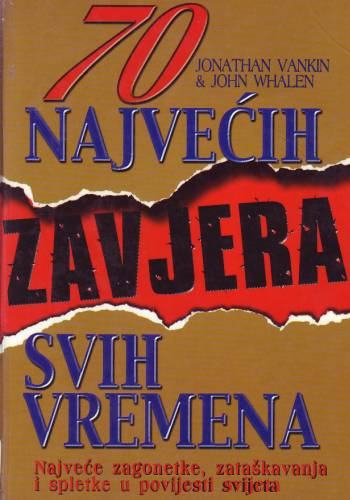 U zadnje vrijeme, teorije zavjere toliko su uzele maha da se percepcija javnosti prema njima poprilično promijenila. Prije nekih 4-5 godina kad su te teorije tek probile put u širu javnost i kad su i potpuno nezainteresirani ljudi čuli za njih, bilo je cool znati nešto više o tome i objasniti to ljudima oko sebe. No, danas ste više cool ako znate o njima, a ne vjerujete. Još prije 10-ak godina, puno prije nego je David Icke postao popularan, knjiga '70 NAJVEĆIH ZAVJERA SVIH VREMENA', autora Jonathana Vankina i Johna Whalena je postala trenutni hit. No, zavjere koje ova knjiga obrađuje nisu toliko nadrealne, ne ide se u fantastične krajnosti poput spomenutog Davida Ickea i njemu sličnih autora, nego o aferama o kojima smo mogli čitati u novinama i gledati svakodnevno na televiziji. Watergate, ubojstva braće Kennedy, Johna Lennona, smrt Jima Morrisona, nacistički špijuni, nacistička tehnologija iza Drugog svjetskog rata, i slične afere tema su ove knjige. Uz opušten način kojim se pisci obraćaju čitatelju, ova knjiga je odličan izbor za opuštanje i ugodnu razonodu.