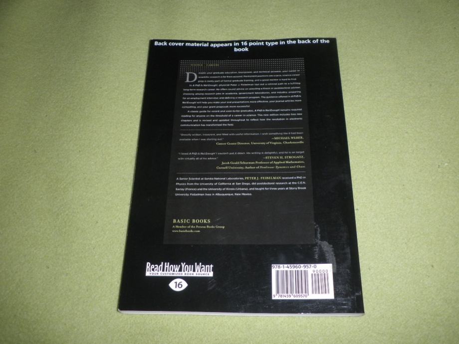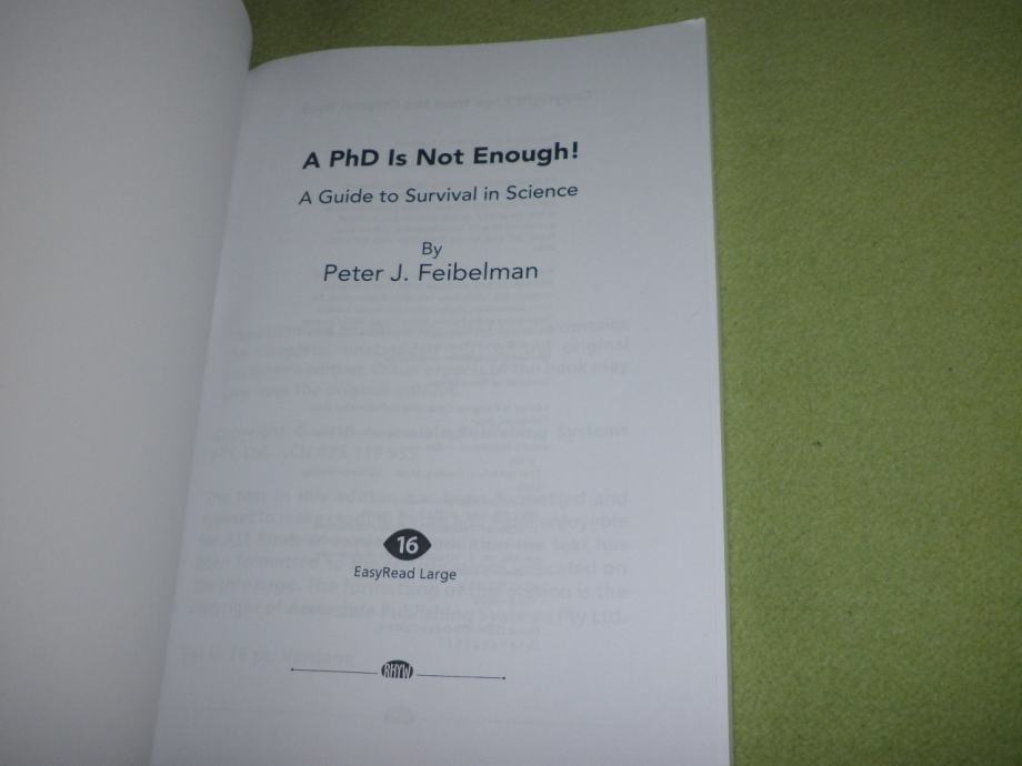 A PhD IS NOT ENOUGH - Peter J. Feibelman