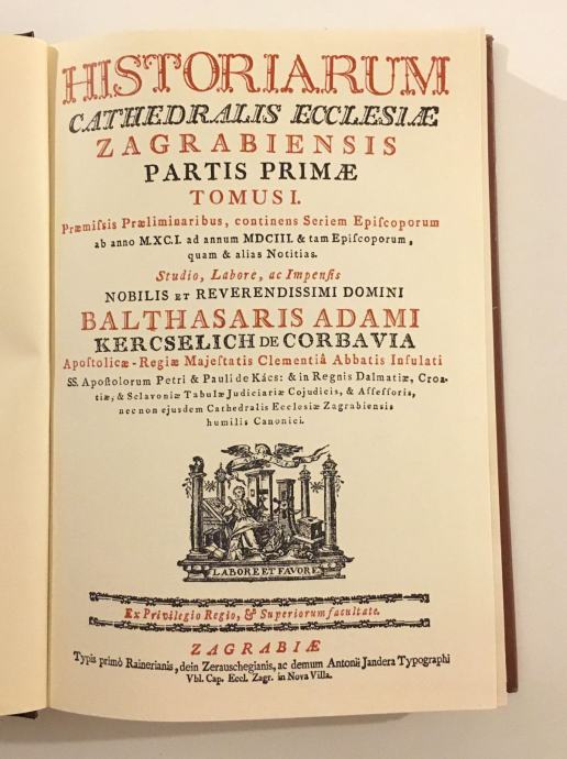 Adam Baltazar Krčelić Historiarum cathedralis ecclesiae Zagrabiensis 1