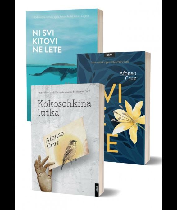 Ni svi kitovi ne lete - Usred Hladnog rata, CIA je osmislila plan nazvan „Ambasadori jazza“. Njime se putem glazbe namjeravalo poboljšati međunarodnu percepciju Sjedinjenih Američkih Država, koja je u tom razdoblju bila osobito negativna te, naravno, pobijediti u ratu. S druge strane Željezne zavjese organizirani su tako brojni koncerti različitih velikana jazza, s vjerom kako će preobratiti mlade ljude s istoka koji su slušali ozbiljnu glazbu, ali su imali malo dodira s drugim glazbenim žanrovima, posebice jazzom.Cvijeće - Iz pera autora remek-djela Kokoschkina lutka Afonso Cruz, autor nagrađivanog remek-djela Kokoschkina lutka (Naklada Ljevak, 2015.), u romanu Cvijeće nastavlja u sličnom stilu: radnja se odvija kroz nekoliko isprepletenih priča koje se na kraju spajaju u složenu cjelinu. Tema romana Cvijeće je naše pamćenje i pitanje kako nas ono određuje. Priča je smještena u suvremeni Portugal, a glavni lik je gospodin Ulme koji je svakoga dana sve više uznemiren novinskim vijestima. Nakon što doživi moždani udar, potpuno gubi emocionalno pamćenje: sjeća se svog PIN-a na bankomatu, ali se ne sjeća prvog poljupca. Zna sve o glazbi, ali ne sjeća se da je ikada vodio ljubav. Pripovjedač knjige, cinični novinar nezadovoljan životnom rutinom, pokušava Ulmeu pomoći vratiti izgubljeno emocionalno pamćenje. Ali ta zadaća nije nimalo laka jer odgovor na pitanje tko smo ovisi o osobi koju pitamo: netko kome se ne sviđamo, za nas će reći da smo grozni, dok će onaj tko nas obožava tvrditi da smo sveci. Kokoschkina lutka - Roman Kokoschkina lutka simbol je i metafora jednog prijateljstva, priča o tome kako je odnos s Drugim temeljanza naš identitet. Protagonist romana je Isaac Dresner, Židov koji je počeo šepati na lijevu nogu opterećen sjećanjem na pogibiju najboljeg prijatelja u Drugom svjetskom ratu. Čitatelj se također upoznaje s Bonifazom Vogelom, vlasnikom prodavaonice ptica, Tsilijom Kacev, ortodoksnom Židovkom koja dobiva stigme i Zsigmondom Vargom, milijunašem koji želi izvagati ljudsku dušu vagom. U priči prožetoj glazbom pojavljuju se još poraženi pjesnik, sama Kokoschkina lutka te gitarist za kojega se ljudi dijele na kategorije koje odgovaraju gitarskim akordima…<br><br>Jezik: Zagreb<br>Pismo: Latinica<br>Stanje: Nova knjiga<br>Uvez: Tvrdi<br>Godina: 2022<br>
