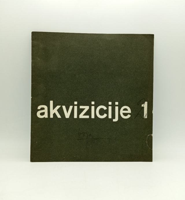 Akvizicije 1Katalog izložbe, Galerija suvremene umjetnosti, Zagreb, 23. 3. - 10. 4. 1963.Katalog i plakat opremio: Ivan PiceljPostav izložbe: Edo KovačevićFotografije eksponata: Branko BalićKatalog izložbe štampanje u 500 primjeraka.Stranica: 20Dimenzije: 20x21Jezik: ZagrebPismo: LatinicaStanje: Vrlo dobroUvez: MekiGodina: 1963
