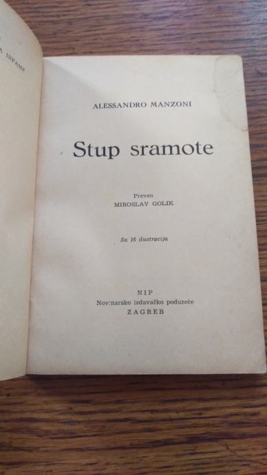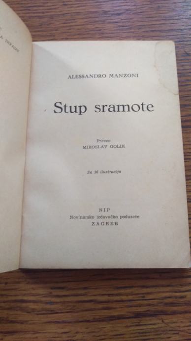 Prodajem nadopunu romana "Zaručnici" - STUP SRAMA. Izdano 1954 god. u Zagrebu, NIP. Uvez je meki i ima 115 stranica, sa 16 ilustracija.