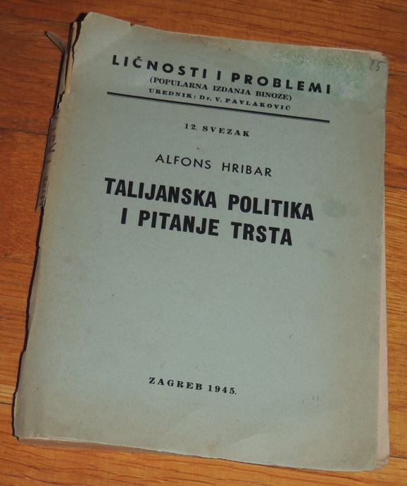 Alfons Hribar Talijanska politika i pitanje Trsta