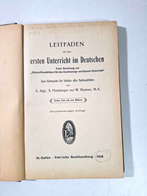 Alge's Sprachbuecher. Leitfaden fuer den ersten Unterricht im Deutschen. Erster Teil mit vier Bildern.