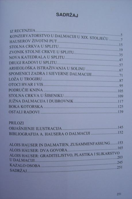 Na unut. str. pred. om. lista: Bilješka o autoru. - Bibliografija uz tekst. - Str. 153-162: Alois Hauser in Dalmatien : Zusammenfassung. - Imensko kazalo.