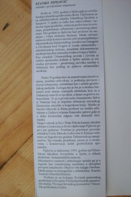 Knjiga nas upoznaje s djelatnošću austrijskog arhitekta i konzervatora A.Hausera u Dalmaciji