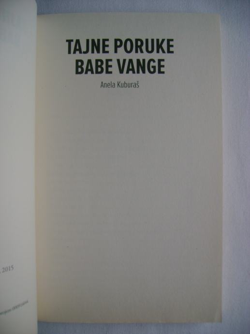 Anela Kuburaš - Tajne poruke Babe Vange - izdavač 24 sata, Zagreb 2015. godine, 13 x 20 cm, meki uvez, 160 stranica.