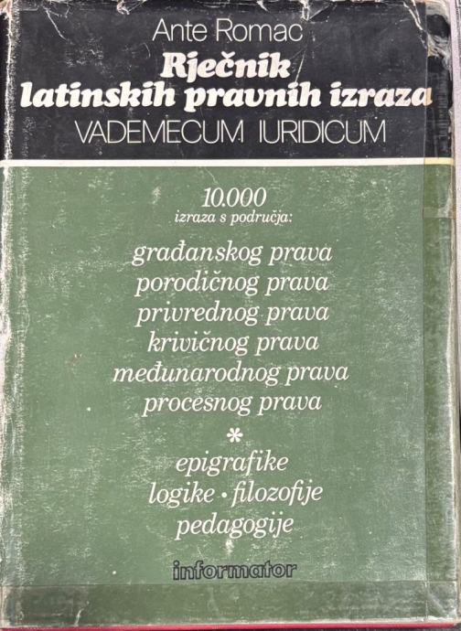 Ante Romac: Rječnik latinskih pravnih izraza (VADEMECUM IURIDICUM)