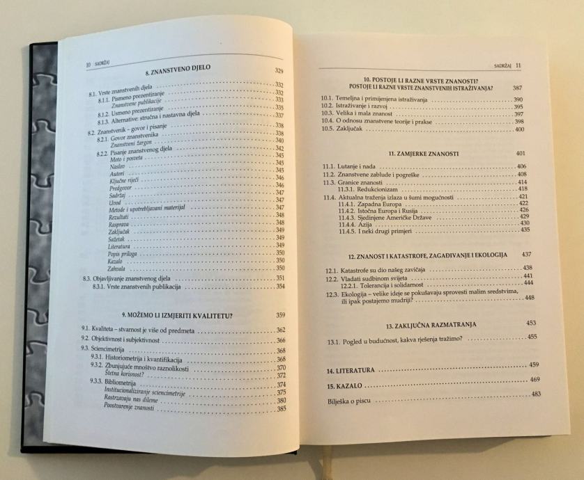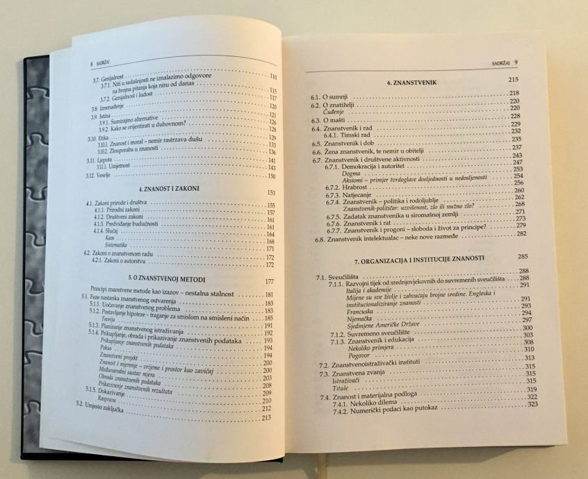 Razumijevajući znanost kao vrstu znanja od općeg civilizacijskog značaja, u trećem dijelu trilogije (prvi dio trilogije se bavi znanjem, a drugi civilizacijom) autor pokušava sabrati mnoštvo spoznaja o znanju i civilizaciji. Tumačeći znanost kao veliku avanturu, koja svoju kulminaciju dostiže u naše doba, znanost prikazuje kao izazov, ali i kao moguću opsesiju. Fenomenu znanosti pristupa sveobuhvatno i zahvaća u mnoge segmente (povijesni razvoj; podjela znanosti; odnos znanosti prema moralu, zakonu, intelektualizmu; metode znanstvenog istraživanja; profesija – znanstvenik; organizacija i institucije znanosti; zamjerke znanosti; znanost i ekologija itd.) U nastojanju da svoja promišljanja učini što pristupačnijima širem krugu čitatelja, tj. u pokušaju isticanja ideje vodilje, autor je odustao od striktnog navođenja izvora pojedinih misli i citata.