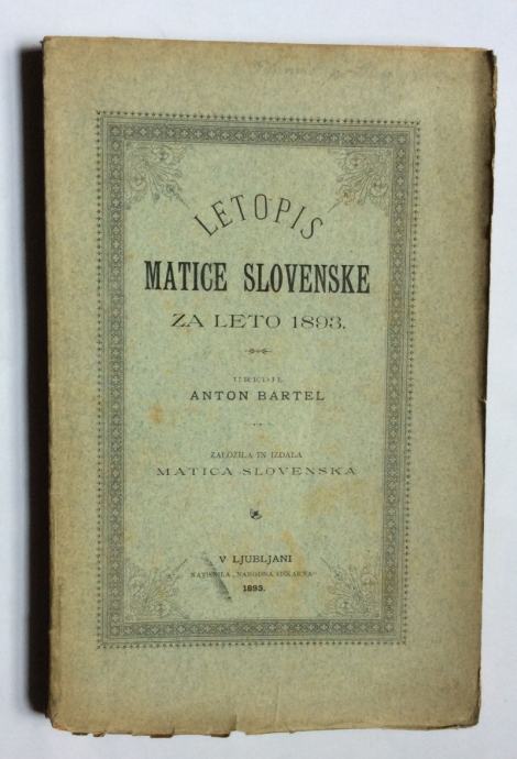ANTON BARTEL, LETOPIS MATICE SLOVENSKE ZA LETO 1893. LJUBLJANA, 1893.