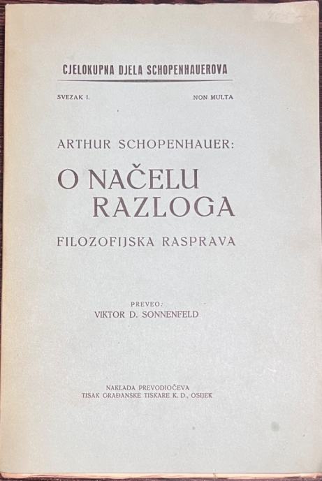 Arthur Schopenhauer: O načelu razloga, filozofijska raspravaNaklada prevoditelja Viktora D. Sonnenfelda