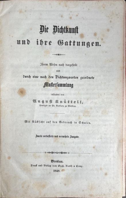 August Knüttell: Die Dichtkunst und ihre Gattungen. Ihrem Wesen nach d