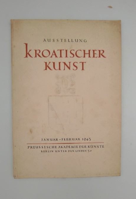 Ausstellung Kroatischer KunstVrlo rijedak katalog izložbe hrvatskih umjetnika održane u travnju i svibnju 1943. u Beču.U katalogu su reprodukcije djela: Meštrovića, Veže, Klement Crnčića, Mišea, Filakovca, Medovića, Uzelca, Kljakovića, Kraljevića... Stranica: 43 24Dimenzije: 17.5x24Jezik: ZagrebPismo: LatinicaStanje: Vrlo dobroUvez: MekiGodina: 1943