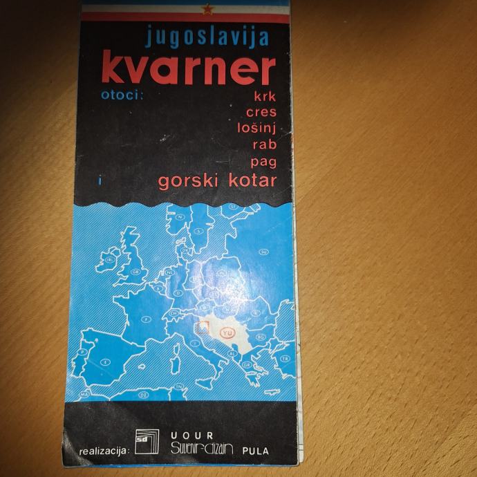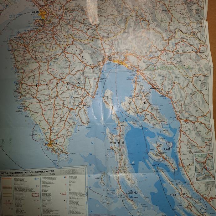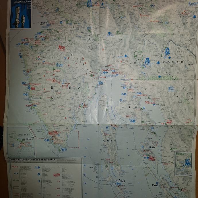 Na prodaju jednostavna dvostrana auto-karta/turistička karta Istre i Kvarnera za vrijeme Jugoslavije.