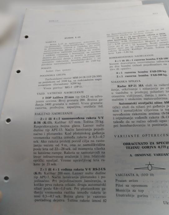 Katalog borbenih sposobnosti aviona i helikoptera u RV i PVO.