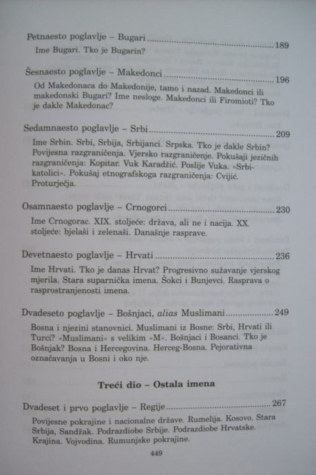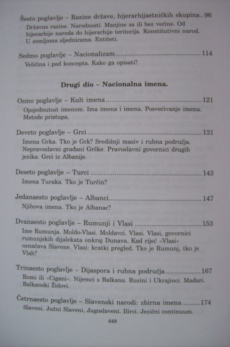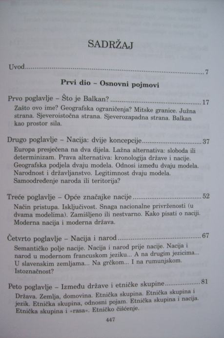 "ukodirane nacionalne pretpostavke". Zato Garde u prvom dijelu knjige nastoji odrediti pojedine termine koji su glavni izvor nerazumijevanja: od samog pojma "Balkan", pa do pojedinih nacija na njemu, i to sa svim semantičkim implikacijama koje ti pojmovi proizvode. U drugom dijelu knjige Garde istražuje poseban razred imenica kojima stanovnici poluotoka pridaju simboličku iskonsku važnost. To su, dakako, same balkanske nacije. Autor se bavi kultom i posvećivanjem imena, njihovim semantičkim rasponom, granicama i povijesnim razgraničenjima. U trećem dijelu analizira se podrijetlo imena regija i gradova, vjera i jezika, osobnih imena i predaka. To su često "konfliktne imenice", područja prijepora i međunacionalnih trvenja (Kosovo, Sandžak, Krajina; hrvatski i srpski, bugarski i makedonski jezik; katoličanstvo, pravoslavlje, islam, itd.).