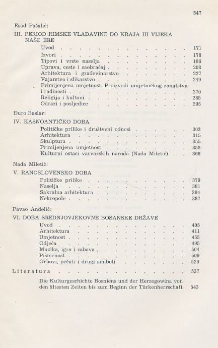 A. Benac, B. Čović, F. Pašalić, Đ. Basler, N. Miletić, P. Anđelić, Kulturna istorija Bosne i Hercegovine od najstarijih vremena od početka turske vladavine