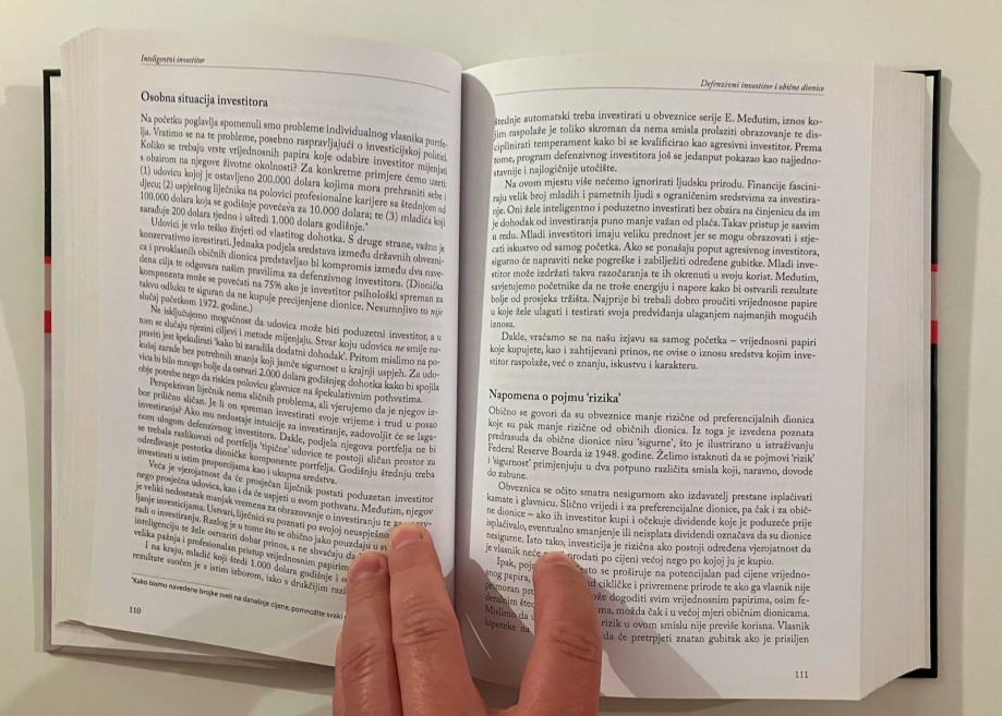 Uspješno investiranje ne zahtijeva izuzetno visok kvocijent inteligencije ni neobičnu poslovnu pronicavost ni insajderske informacije. Potreban je pouzdan intelektualni okvir pomoću kojeg donosite odluke te sposobnost da vas emocije ne odvrate od zadanog okvira. Ova knjiga jasno i precizno propisuje odgovarajući okvir. Potrebno je zadržati emocionalnu disciplinu. Knjiga je namijenjena investitorima, koji se razlikuju od špekulanata te je naš prvi zadatak razjasniti i naglasiti zaboravljenu razliku između ta dva pojma. Kako biste inteligentno investirali, morate se naoružati adekvatnim znanjima o prošlim kretanjima obveznica i dionica u različitim uvjetima jer ćete slične uvjete vjerojatno ponovno sresti. Ne postoji niti jedna bolje upotrijebljena izreka od Santayanine: “Tko je zaboravio povijest, osuđen je da je ponavlja.”Iz sadržaja: INVESTIRANJE NASPRAM ŠPEKULACIJI / INVESTITOR I INFLACIJA / STOLJEĆE TRŽIŠTA DIONICA : CIJENE DIONICA POČETKOM 1972. / OPĆENITA TEORIJA PORTFELJA / DEFENZIVNI INVESTITOR I OBIČNE DIONICE / POLITIKA PORTFELJA ZA PODUZETNOG INVESTITORA : NEGATIVAN PRISTUP / POLITIKA PORTFELJA ZA PODUZETNOG INVESTITORA : POZITIVNA STRANA / INVESTITOR I TRŽIŠNE FLUKTUACIJE / INVESTIRANJE U INVESTICIJSKE FONDOVE / INVESTITOR I NJEGOVI SAVJETNICI / ANALIZA VRIJEDNOSNIH PAPIRA ZA INVESTITORE LAIKE - OPĆENITI PRISTUP / STVARI KOJE TREBA UZETI U OBZIR KOD ZARADE PO DIONICI / USPOREDBA ČETIRI DIONICE KOJE KOTIRAJU NA BURZI / ODABIR DIONICA ZA DEFENZIVNOG INVESTITORA / ODABIR DIONICA ZA PODUZETNOG INVESTITORA / KONVERTIBILNE EMISIJE I VARANTI / ČETIRI IZUZETNO POUČNA POVIJESNA SLUČAJA / USPOREDBA OSAM PAROVA DRUŠTAVA / DIONIČARI I MENADŽMENT : POLITIKA DIVIDENDI / "MARŽA SIGURNOSTI" KAO SREDIŠNJI KONCEPT INVESTIRANJA /