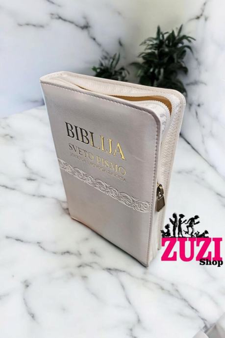 Biblija - eko kožni fleksibilni uvez s patentnim zatvaračem Dostupne boje: bijela, crvena, smeđa i crna Prilikom web-naručivanja u rubriku Napomena potrebno je navesti željenu boju. Nakladna kuća Verbum u suradnji s Vrhbosanskom nadbiskupijom i Hrvatskim biblijskim društvom objavila je novo hrvatsko izdanje Biblije. Ova jedinstvena Biblija praktičnoga formata i privlačnoga izgleda sadrži cjelokupni tekst Svetoga pisma u novom popravljenom i potpuno osuvremenjenom prijevodu nadbiskupa Ivana Ev. Šarića. Taj hrvatskih prijevod Biblije posljednjih je godina zbog svoje dorađenosti te jednostavnoga i razumljivoga stila vrlo tražen, o čemu svjedoči i činjenica da je u samo nekoliko godina objavljeno deset izdanja tiskanih u više desetaka tisuća primjeraka. Bogato opremljeni eko kožni uvezi opskrbljeni su zlatnim obrubom i indeksom i dostupni su u crnoj, smeđoj, crvenoj i bijeloj boji.Stranica: 230Dimenzije: 13x19 cmJezik: ZagrebPismo: LatinicaStanje: Nova knjigaUvez: Tvrdi s ovitkomGodina: 2016