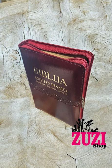 Biblija - eko kožni fleksibilni uvez s patentnim zatvaračem Dostupne boje: bijela, crvena, smeđa i crna Prilikom web-naručivanja u rubriku Napomena potrebno je navesti željenu boju. Nakladna kuća Verbum u suradnji s Vrhbosanskom nadbiskupijom i Hrvatskim biblijskim društvom objavila je novo hrvatsko izdanje Biblije. Ova jedinstvena Biblija praktičnoga formata i privlačnoga izgleda sadrži cjelokupni tekst Svetoga pisma u novom popravljenom i potpuno osuvremenjenom prijevodu nadbiskupa Ivana Ev. Šarića. Taj hrvatskih prijevod Biblije posljednjih je godina zbog svoje dorađenosti te jednostavnoga i razumljivoga stila vrlo tražen, o čemu svjedoči i činjenica da je u samo nekoliko godina objavljeno deset izdanja tiskanih u više desetaka tisuća primjeraka. Bogato opremljeni eko kožni uvezi opskrbljeni su zlatnim obrubom i indeksom i dostupni su u crnoj, smeđoj, crvenoj i bijeloj boji.Stranica: 230Dimenzije: 13x19Jezik: SPLITPismo: LatinicaStanje: Nova knjigaUvez: TvrdiGodina: 2016