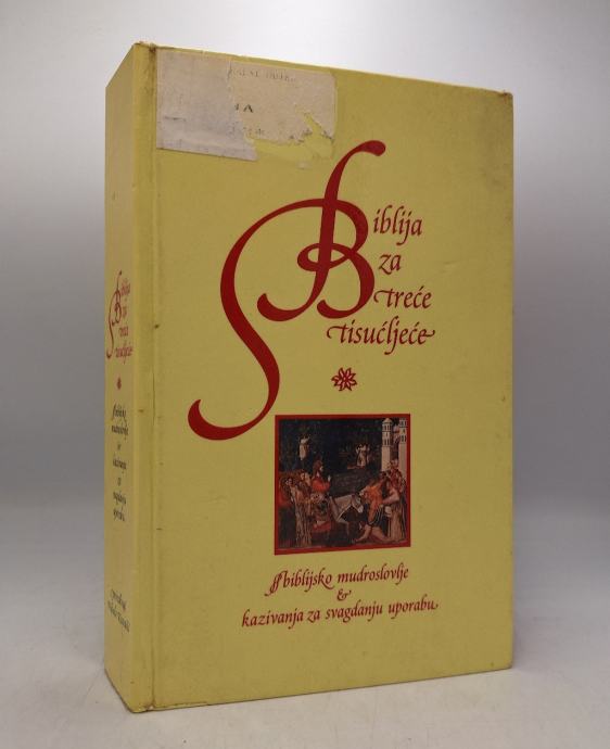 Nikola Kuvačić: Biblija za treće tisućljećeBiblijsko mudroslovlje & kazivanja za svagdanju uporabuPolazeći od činjenice da prosječni čitatelj u uvjetima urbanog ritma življenja i informacijske hiperprodukcije nema vremena za temeljito iščitavanje Biblije, autor se prihvatio ambicioznog znanstveno-istraživačkog zadatka da iz cjelokupnosti golemog biblijskog štiva izluči i selekcionira cijeli niz misli, rečenica i ulomaka, koji imaju značenje "mudroslovnica za svagdanju uporabu". U tom smislu Kuvačić je svu tu građu razvrstao u četrdeset i osam predmetno-tematskih skupina, i to dio prema ključnim riječima i njihovim izvedenicama, a dio prema njihovu širem značenju u okviru naslovljena asocijativnog određenja. Zbog lakšeg pronalaženja izvornika autor je izradio popis biblijskih knjiga i kratica.Stranica: 506+174Dimenzije: 14x22Jezik: SplitPismo: LatinicaStanje: Vrlo dobroUvez: TvrdiGodina: 2000