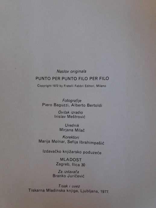 Knjiga o ručnim radovima, BOD DO BODA - ženski ručni radovi autorice Giuliane Ramelli Dieci, izdavač Mladost.