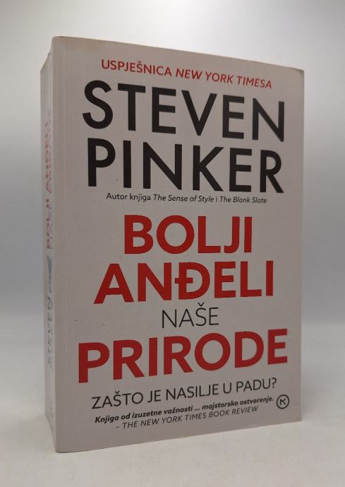 Steven Pinker: Bolji anđeli naše prirodeKnjiga Bolji anđeli naše prirode Stevena Pinkera fascinantno je istraživanje ljudske povijesti koje pokazuje kako je, unatoč ratovima i nasilju, svijet kroz stoljeća postao sigurnije i mirnije mjesto. Kombinirajući povijest, psihologiju i statistiku, Pinker objašnjava što potiče agresiju, ali i kako su civilizacija, kultura i empatija pridonijele smanjenju nasilja, čineći ovu knjigu nezaobilaznim štivom za ljubitelje povijesti, društvenih znanosti i ljudske prirode. Pisano je na zadnjoj stranici olovkom.Stranica: 865Dimenzije: 16.5x24Jezik: ZagrebPismo: LatinicaStanje: OdličnoUvez: MekiGodina: 2021