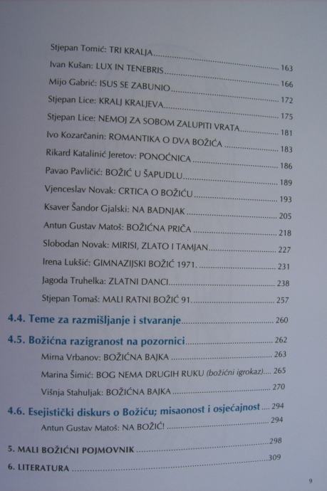 Izbor najljepših božićnih tekstova hrvatskih pisaca i pjesnika s metodičkom obradom koji će poslužiti u radu nastavnicima / katehetama, ali koristiti i svim drugima za osobnu izgradnju. Poticaj nakladniku za izdavanje ove knjige potreba je da se o Božiću, tom velikom otajstvu kršćanske vjere, razgovara i razmišlja na svim razinama osobito danas u vrijeme sveprisutne komercijalizacije i banaliziranja te svetkovine duboko urasle u kulturu hrvatskog naroda. Knjiga donosi više od 100 različitih književnih tekstova božićne tematike – poetskih, proznih, scenskih, esejističkih i biblijskih – iz pera šezdesetak hrvatskih pisaca, kao i ostvarenja narodne književne baštine, a opremljena je s više od 50 likovnih djela hrvatskog slikara Josipa Botterija Dinija. Bogatstvu, skladu i raznolikosti knjige pridonosi spoj najstarijih tradicijskih elemenata u pjesmama »Bog se rodi v Vitliomi« i »U se vrijeme godišta« do kasnijih poput »Narodi nam se kralj nebeski«, »Svim na zemlji mir, veselje«, »O Betleme« sa stvaralaštvom starijih (Ksaver Šandor Đalski, Ivan Goran Kovačić, Ton Smerdel, Tin Ujević, Dragutin Domjanić, Miroslav Krleža) i novijih hrvatskih pisaca (Stjepan Tomaš, Božidar Prosenjak, Božidar Petrač, Stjepan Tomić, Stjepan Lice) te biblijskim tekstovima. Knjiga osim toga donosi pregled religioznog duha i božićne tradicije u hrvatskoj književnosti kao i brojne teme za razmišljanje i stvaranje te mali božićni pojmovnik koji ovo djelo čine jedinstvenom božićnom antologijom. Njezina je osobitost i metodička obrada, koja prati svaki tekst te većinu likovnih djela, čiji izbor omogućuje ostvarivanje međupredmetne i unutarpredmetne korelacije (književno-teološke, književno-likovne, književno-glazbene, književno-vjeronaučne, književno-jezične...), razvijanje čitateljskih navika, poticanje stvaranja estetskih prosudbi, razvijanje literarnih sposobnosti, rast osobnosti, oblikovanje vrijednosnog sustava i izgrađivanje stavova, poticanje kreativnosti... Knjiga je namijenjena širokoj publici, odnosno različitim uzrastima i različitim recepcijskim sposobnostima, a koristit će nastavnicima hrvatskoga jezika, vjeronauka i likovne umjetnosti za rad u nastavi i u izvannastavnim aktivnostima, odgojiteljima u vrtićima, katehetama i svećenicima za rad u župama, tijekom priprema božićnih svečanosti, crkvenih i školskih priredbi. Namijenjena je i svima koji žele produbiti znanja o božićnoj svetkovini te srcem i umom ući, osjetiti i spoznati dubinu božićnog otajstva. Tekstovi u knjizi nastoje u svim ljudima dobre volje rasplamsati radost i nadu, potaknuti pomirenje i ojačati ljubav prema Bogu i čovjeku, jer ljubeći Boga ljubimo čovječanstvo, a gorljivošću za bližnjega oplemenjujemo svijet