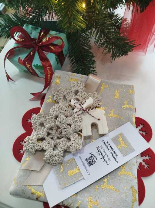Božićni poklon paket uključuje:- 1 torbica za knjigu - 1 bookmarker/ Označivač stranica - 2 heklane pahuljice - ukrasi za bor - 1 svijeća od sojinog voska - ručno rađena i proizvedena u Hrvatskoj Ovo nije masovni proizvod – već mali, pažljivo osmišljen set kako bi ovih blagdana poklonili nešto jedinstveno i s pažljivo odabranim detaljima. Idealan poklon za svakog knjigoljupca.NAPOMENA: Ne uključuje knjigu. Možemo dodati knjigu po vašem izboru. U tom slučaju cijena će varirati.Dimenzije (približno): TORBICA:Širina: 22cmVisina: 28cmDužina trakice: 28cmOZNAČIVAČ STRANICA:Širina: 4cmVisina: 15,5cmPAHULJICA:Promjer (najduži krajevi): 13cmSVIJEĆA:Visina: 8cmŠirina: 6,5cmSastav:TORBICA ZA KNJIGUSastav:Vanjski materijal: 100% pamukPodstava: 50%pamuk, 50% centilen platnoSatenska trakica - 100% poliesterOZNAČIVAČ STRANICASastav:Vanjski materijal: 100% pamukUnutrašnji materijal: 100% centilen platnoPAHULJICASastav: 85% Pamuk, 15% Lurex/metalizirana vlaknaSVIJEĆAProizvođač - MIDIS, obrt za dizajn i kreativne usluge, ĐakovoSastav: sojin vosak, pamučni fitiljNapomena: Zbog ručne izrade moguće su male varijacije u boji i obliku, ali zato je svaki paket poseban i jedinstven. Ručni rad. Proizvedeno u Hrvatskoj.