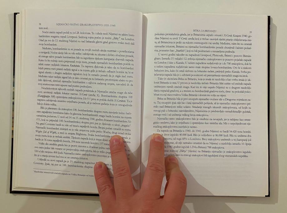 Povijesni prikaz razvitka, organizacije i djelovanja Njemačkog ratnog zrakoplovstva ("Luftwaffea"). Navodeći tridesetak primjera tehnološko-tehničkih inovacija te opisujući njemačku strategija zrakoplovstva, autor otkriva smisao Hitlerovog rata ("Blitzkriega") te ukupnu neuspjelu politiku Trećeg Reicha. Na kraju je knjige prilog s devedeset fotografija zrakoplova i njihovih avijatičara. Predgovor Zdravka Mršića.