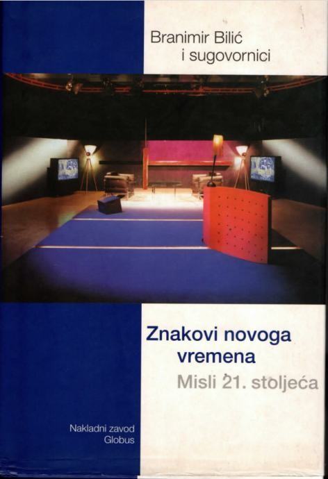 Druga knjiga Branimira Bilića Znakovi novoga vremena nastala je kao rezultat renomirane televizijske emisije Misli 21. stoljeća u kojoj su voditelj i njegovi sugovornici analizirali temeljne političke, društvene i kulturne probleme Hrvatske i svijeta. Trideset i pet istaknutih hrvatskih znanstvenika, poslovnih ljudi, političkih analitičara, te osoba iz kulturnog i književnog života, prokomentirali su trenutnu situaciju u Hrvatskoj, gledajući je iz područja vlastite struke, pokušavajući predvidjeti njenu poziciju u bližoj budućnosti. Pitanja globalizacije, kulture, razvoja moderne tehnologije, poboljšanja životnih uvjeta, stanovanja, obrazovanja, snage Sveučilišta, približavanja europskim standardima - jednom rječju Hrvatske u 21.stoljeću, nalaze se u ovoj knjizi uz individualne odgovore, prijedloge i predviđanjaStranica: 387Jezik: ZagrebPismo: LatinicaStanje: OdličnoUvez: Tvrdi s ovitkomGodina: 2002