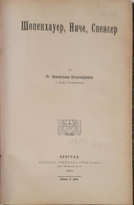 Branislav Petronijević: Šopenhauer, Niče, Spenser