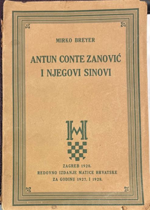 Breyer Mirko: Antun Conte Zanović i njegovi sinovi roman života jedne paštrovsko - budljanske porodice u pretprošlom i prošlom vijeku (1720-1834)sa 16 slika po starim originalima