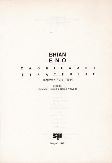 Brian Eno: Zaobilazne strategije, SIC, Beograd 1986.