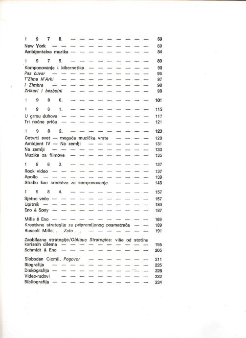 Brian Eno: Zaobilazne strategije, Studentski izdavački centar UKSSO Beograda, Beograd 1986.