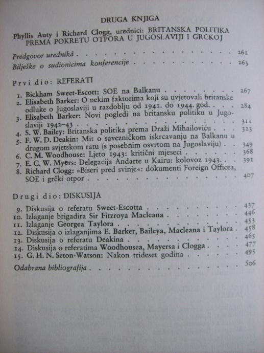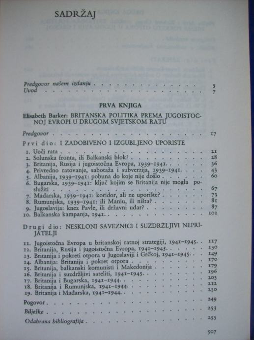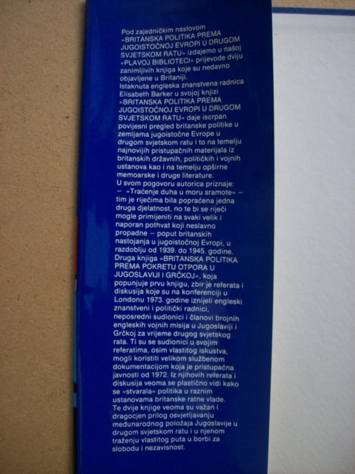 Elisabeth Barker: Britanska politika na Balkanu u II. svjetskom ratu Ova knjiga daje iscrpan povijesni pregled britanske politike u zemljama jugoistočne Europe u Drugom svjetskom ratu i to na temelju materijala iz britanskih državnih, političkih i vojnih ustanova kao i na temelju opširne memoarske i druge literature.