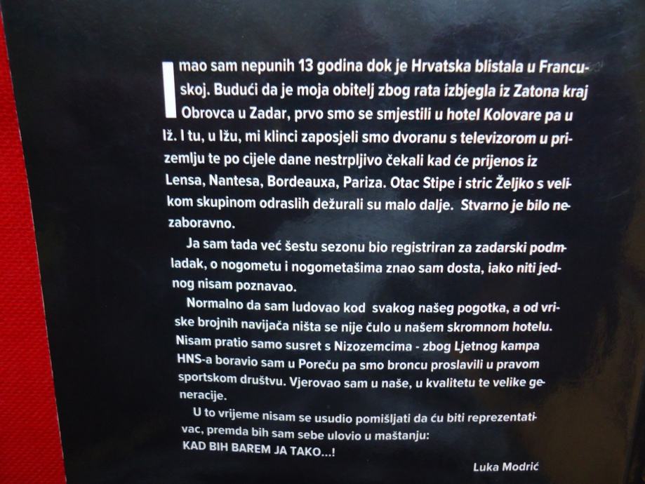 Na zadnjim koricama razmišljanja 13-godišnjeg Luke Modrića o svom životnom snu (koji mu se i ostvario).