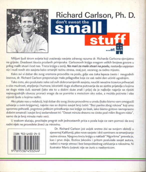 Svojom najnovijom knjigom autor nas još jednom upozorava da je moguće učiniti stanovite pomake u poboljšanju kvalitete života uz pomoć malih prilagodbi u ponašanju. U ovoj trećoj knjizi "Ne mari za male stvari..." autor se usredotočio na smanjenje stresa na poslu. Knjiga sadrži stotinu korisnih savjeta pomoću kojih se može naučiti kako prevladati neke neugodne situacije na poslu, kako se opustiti, kako neke nevažne trzavice prihvatiti s više mudrosti, strpljenja i humora...