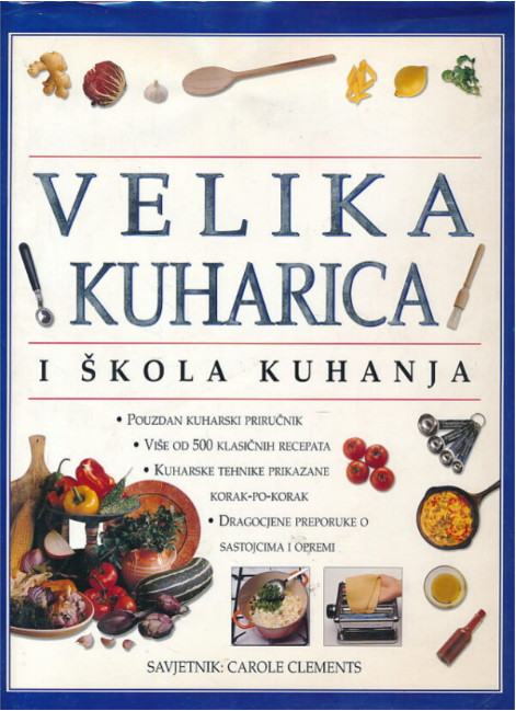 Pouzdan priručnik za domaćice različitih sklonosti– neophodan u svakoj kućnoj knjižniciOpsežan kuharski priručnik s objačnjenjima osnovnih kuharskih tehnikaViše od 500 recepata,od juha i zagrizaka do otmjenih desertaJela za svaku prigodu,od hranjivih obiteljskih ručkova do onih slavljeničkihViše od 1500 ilustriranih fotografija za sve recepte,među kojima su i ilustracije postupakaStranica: 512Dimenzije: 24 × 31 cmJezik: RijekaPismo: LatinicaStanje: OdličnoUvez: TvrdiGodina: 2001