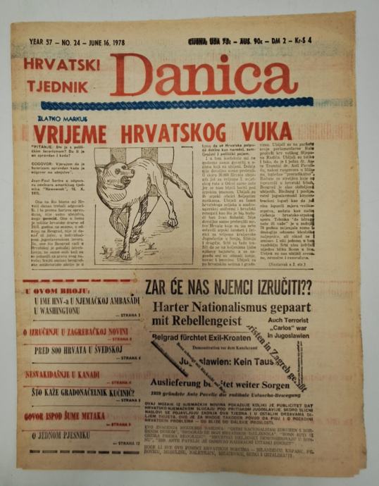 Časopis Danica br. 24/1978. (emigracija)Uređuje: urednički odbor list hrvatskog iseljeništva u SAD-u koji izlazi u više gradova i promijenjenim naslovimaStranica: 15Dimenzije: 29.5x38.5Jezik: ChicagoPismo: LatinicaStanje: Vrlo dobroUvez: MekiGodina: 1978