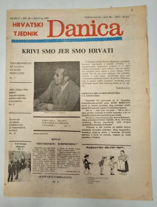 Časopis Danica br. 28/1978. Uređuje: urednički odbor list hrvatskog iseljeništva u SAD-u koji izlazi u više gradova i promijenjenim naslovima Stranica: 15Dimenzije: 29.5x38.5Jezik: ChicagoPismo: LatinicaStanje: Vrlo dobroUvez: MekiGodina: 1978