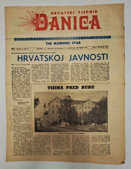 Časopis Danica br. 43/1976. Uređuje: urednički odbor list hrvatskog iseljeništva u SAD-u koji izlazi u više gradova i promijenjenim naslovimaStranica: 15Dimenzije: 29.5x38.5Jezik: ChicagoPismo: LatinicaStanje: Vrlo dobroUvez: MekiGodina: 1976